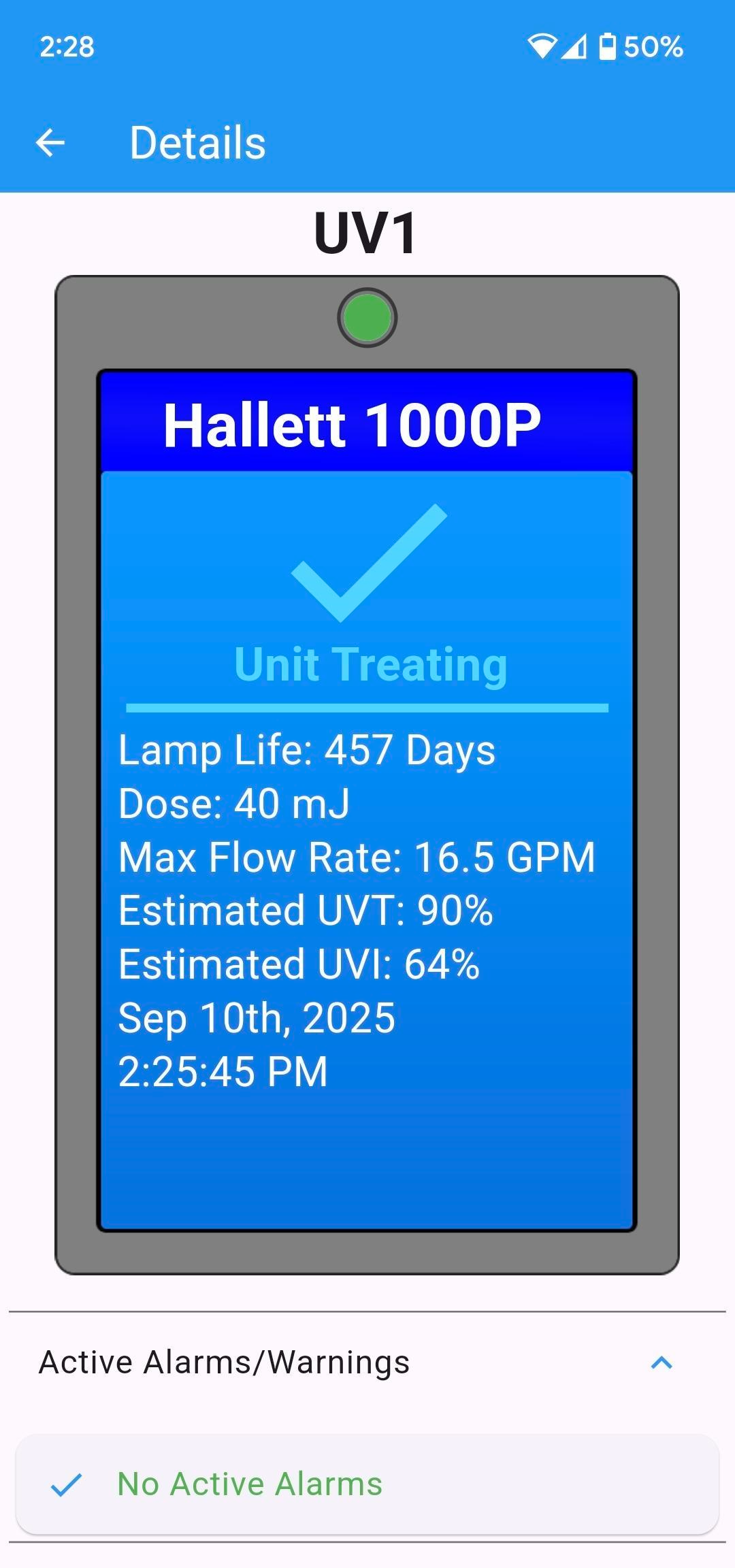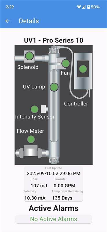 With the LT Display, you get a live, local display of UV data and alarms for up to 9 UVs. The display comes complete with communication cable, power supply and mounting bracket making installation a snap! From the overview screen, you get at-a-glance confirmation of how your system is performing, including the ability to see any active alarms. The LT Display is available right now with this capability!